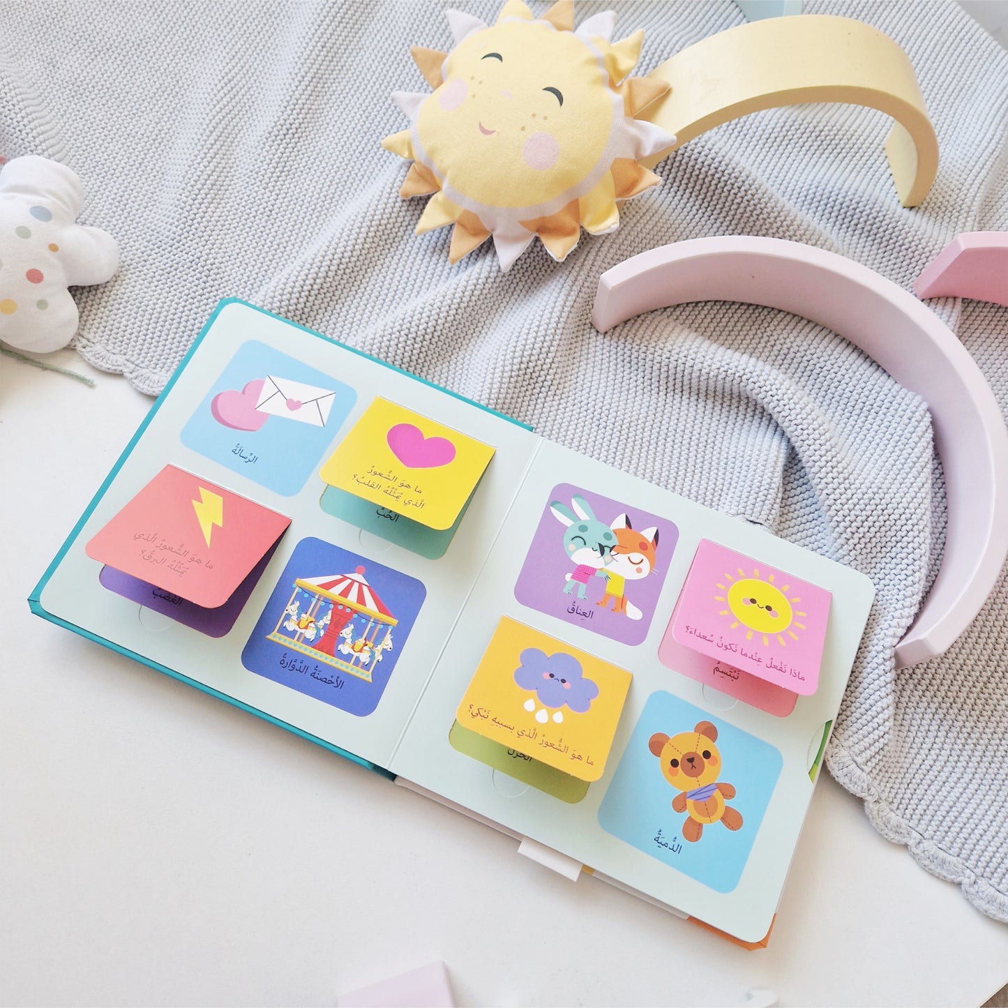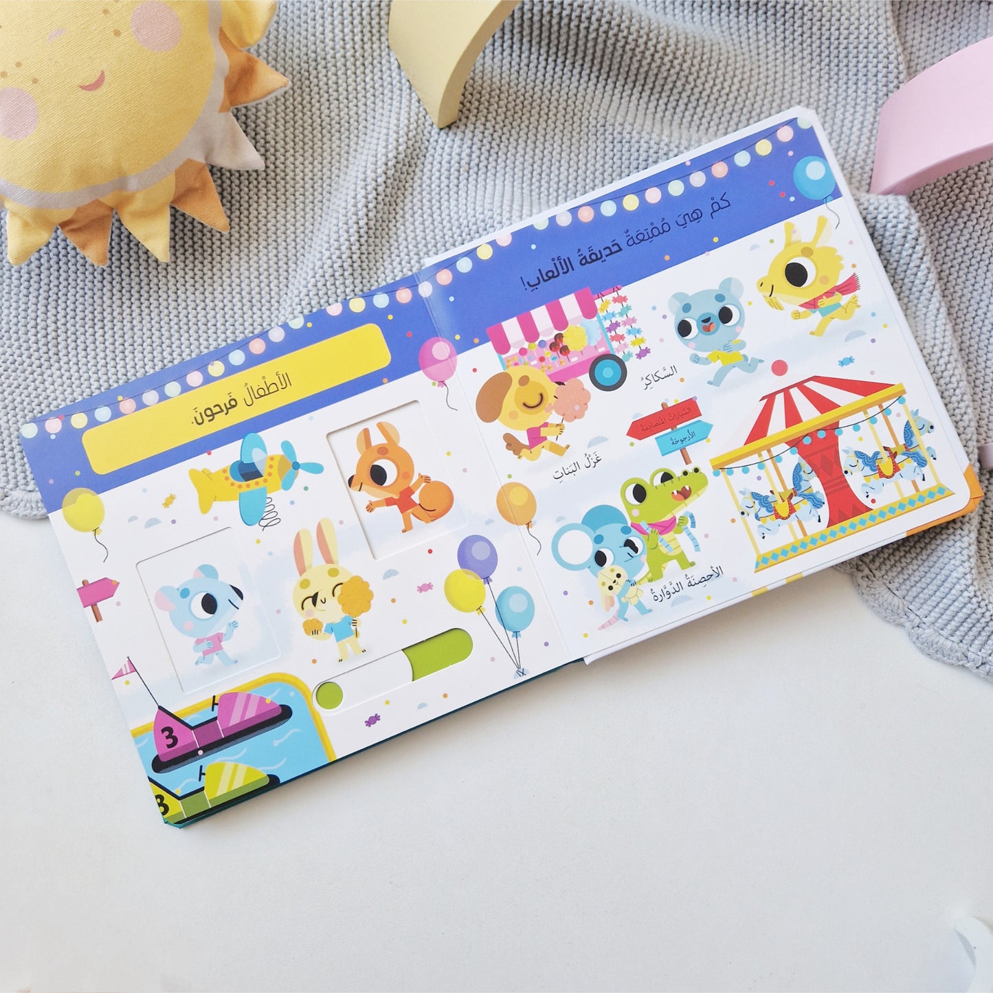سيتفاعل طفلك مع الصفحات الكبيرة المتحركة وسيكتشف ما بداخل النوافذ الشيقة في هذا الكتاب الرائع